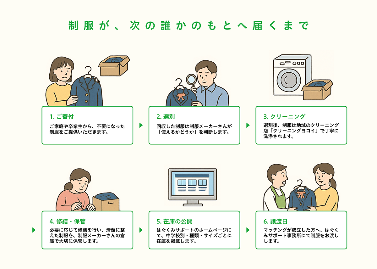 私たちの目的は、制服が捨てられることなくリユースされることです。